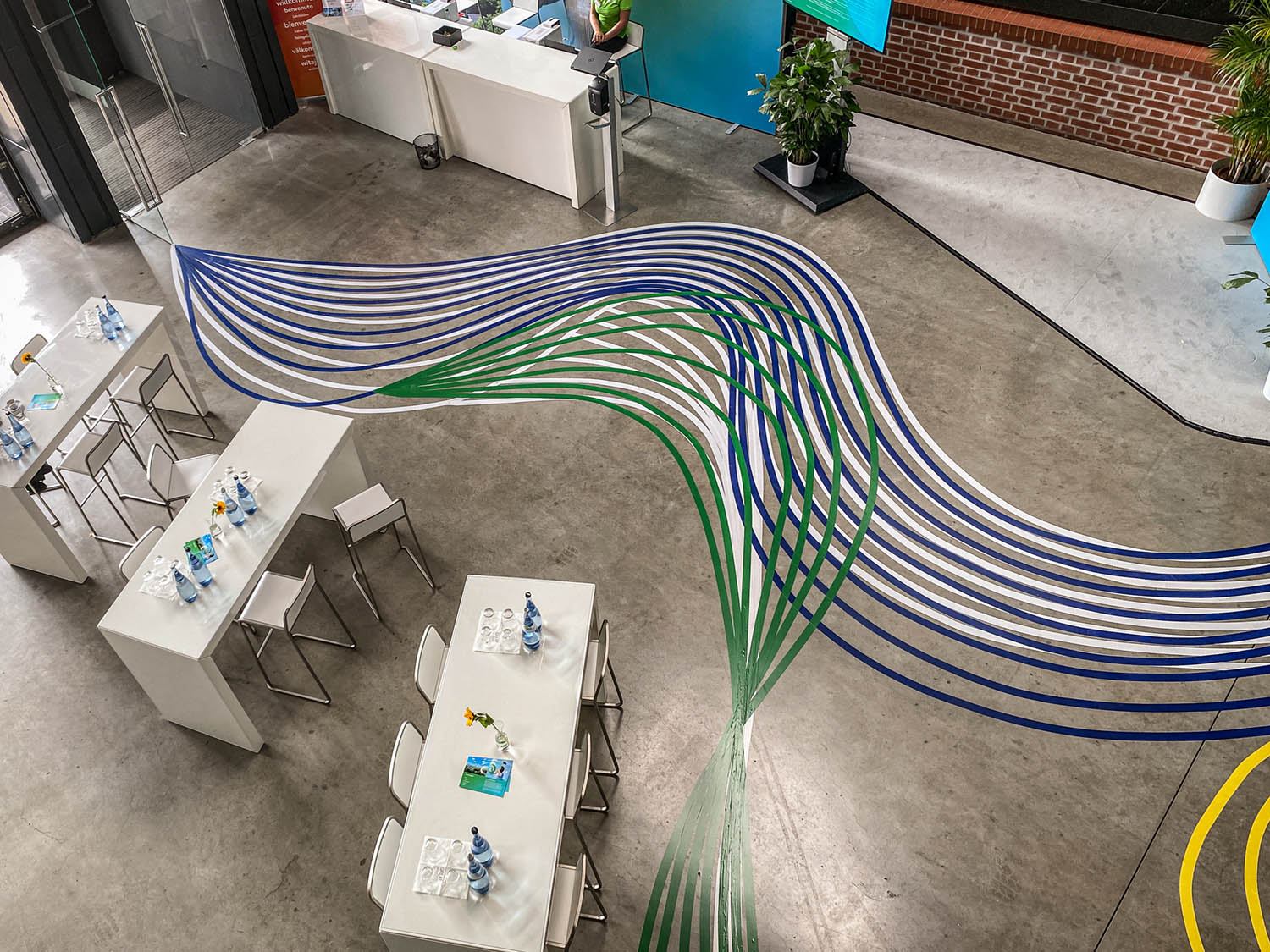 Für die beiden Events Fujitsu Smart Solutions entwickelten wir eine temporäre Bodengestaltung mit Tape Art. Inhaltlich standen die Themen Digitalisierung und Sustainability im Fokus.