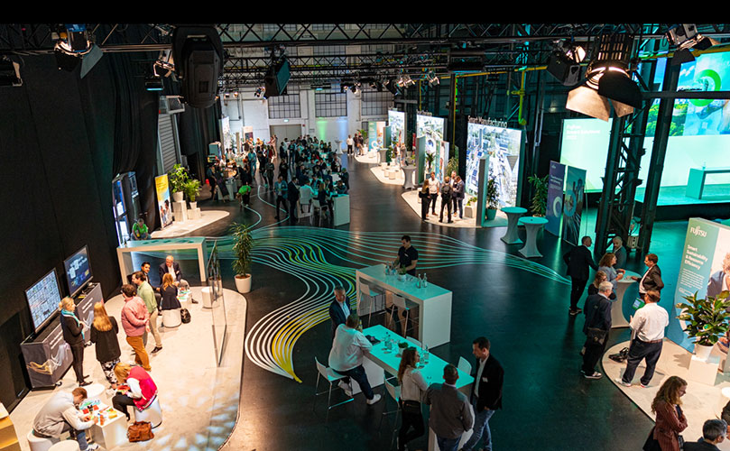 Für die beiden Events Fujitsu Smart Solutions entwickelten wir eine temporäre Bodengestaltung mit Tape Art. Inhaltlich standen die Themen Digitalisierung und Sustainability im Fokus.