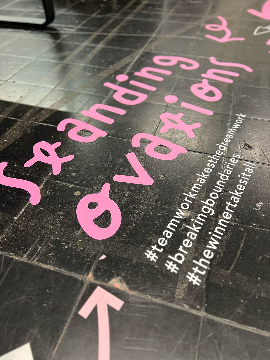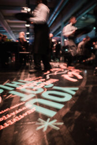 Für das BrandEx „Klassentreffen“ entwickelten wir eine Bodengestaltung mit verspielter Typografie, die Begegnung, Austausch und Wiedersehen visuell aufgriff.
