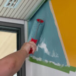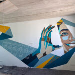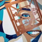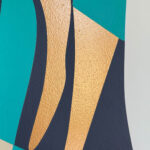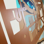 Die Corporate Wall wurde als Mixed-Media-Gestaltung umgesetzt. Neben Klebefolie kamen auch gemalte Flächen mit Wandfarbe zum Einsatz. Besonders reizvoll ist das Zusammenspiel der Materialien: metallisch schimmernde Kupfertöne – teils als Folie, teils als reales Material – treffen auf matte, ruhigere Flächen aus Farbe und matter Folie. Dieser bewusste Kontrast verleiht der Wand Tiefe, Haptik und Spannung.