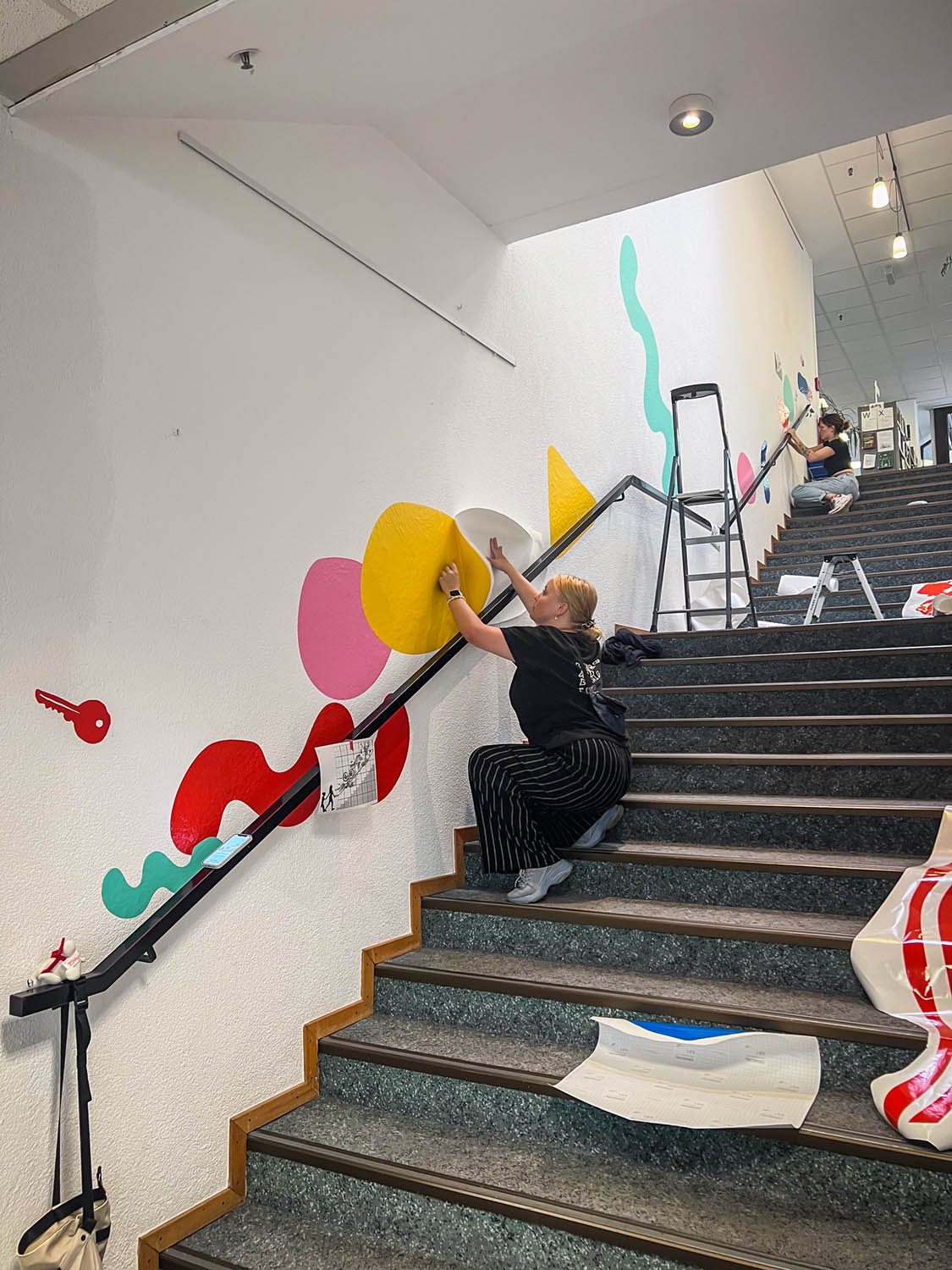 Ziel des Projekts war es, den geplanten Umbau der Bibliothek hin zu einem Kultur- und Bildungszentrum als „Drittem Ort“ sichtbar und begreifbar zu machen. Die Tape Art wurde im Treppenaufgang der Bibliothek umgesetzt und begleitet die Besucher:innen wortwörtlich auf ihrem Weg nach oben – als visuelle und inhaltliche Reise.