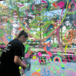 Besonders eindrucksvoll zeigte sich die Arbeit am Abend: Unter Schwarzlicht, Discokugel und Mondlicht begannen die Neonfarben zu leuchten und entfalteten ihre volle Wirkung. Die Tape Art wurde so Teil der Atmosphäre – lebendig, überraschend und perfekt abgestimmt auf den Charakter des Sommerfests.