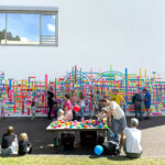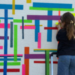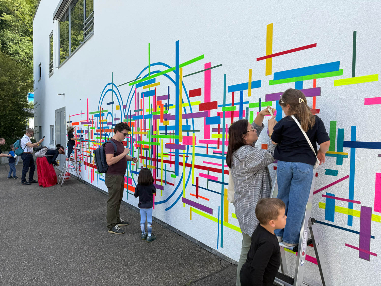 Über den gesamten Tag hinweg entstand ein gemeinschaftliches Kunstwerk auf der Fassade des Museums. Mit bunten Klebebändern wurden Linien geklebt – von klein und filigran bis groß und überlagernd. Das Motiv orientierte sich stilistisch an der geometrisch-abstrakten Kunst, die auch im Museum zu sehen ist. Später wurde aus dem entstandenen Liniengeflecht die Zahl 20 herausgeschnitten – als klares Zeichen für das Jubiläum.